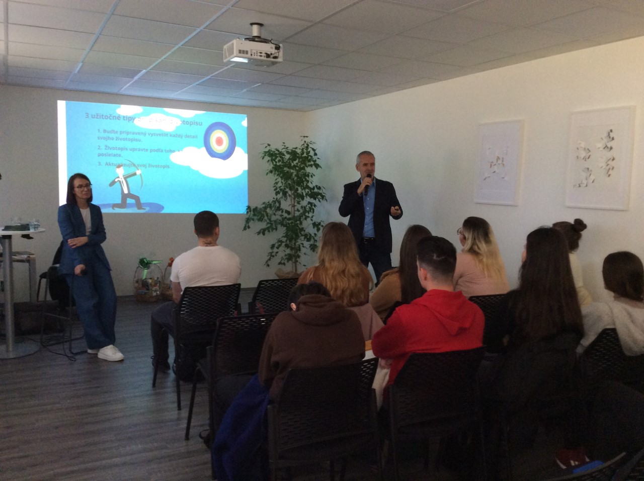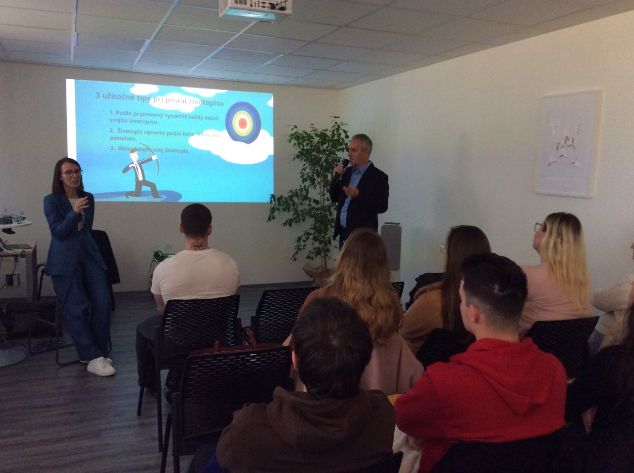 Prvá časť podujatia bola zameraná na informácie, ktoré by mali byť obsiahnuté v životopise žiadateľa, ako správne napísať CV a motivačný list.