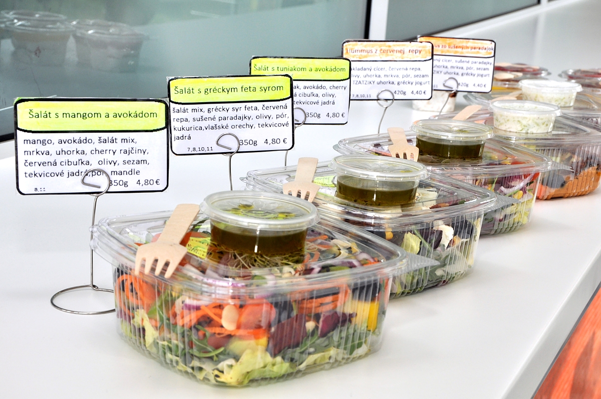Spokojnosť neskrýval ani prevádzkar bufetu Martin Bóna. „Ráno pripravujeme čerstvé obložené kajzerky a domáce raňajkové kaše. Najobľúbenejšie sú s príchuťou lesného ovocia a pridali sme aj variant s mangom,“ prezradil. „V ponuke máme tiež vlastné čerstvé šaláty - s tuniakom, fetou, mangom alebo cícerové pomazánky tzv. hummus so sušenými rajčinami alebo červenou repou. Všetko sa snažíme pripravovať bez cukru a pridaných chemických látok a konzervantov,“ dodal Martin Bóna. Ak je to možné, suroviny na výrobu produktov objednávajú od lokálnych dodávateľov. Dôkazom je napríklad aj čerstvo pražená káva, ktorú dovážajú z pražiarne kúsok od Nitry.