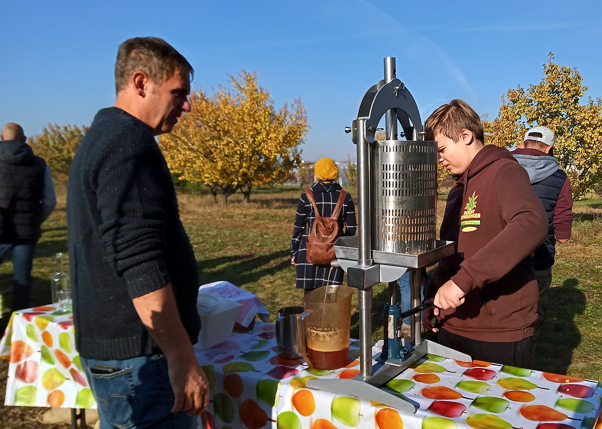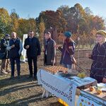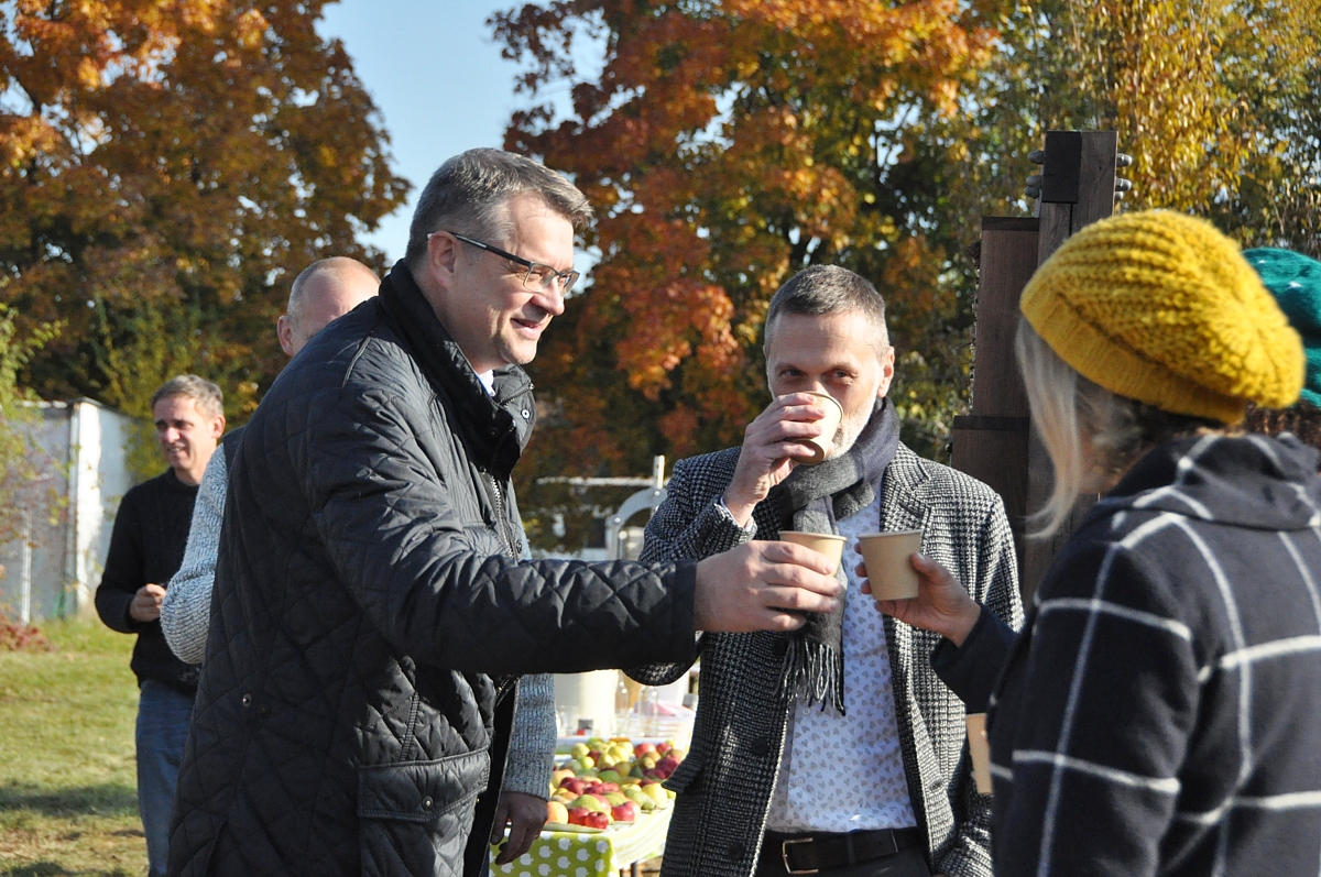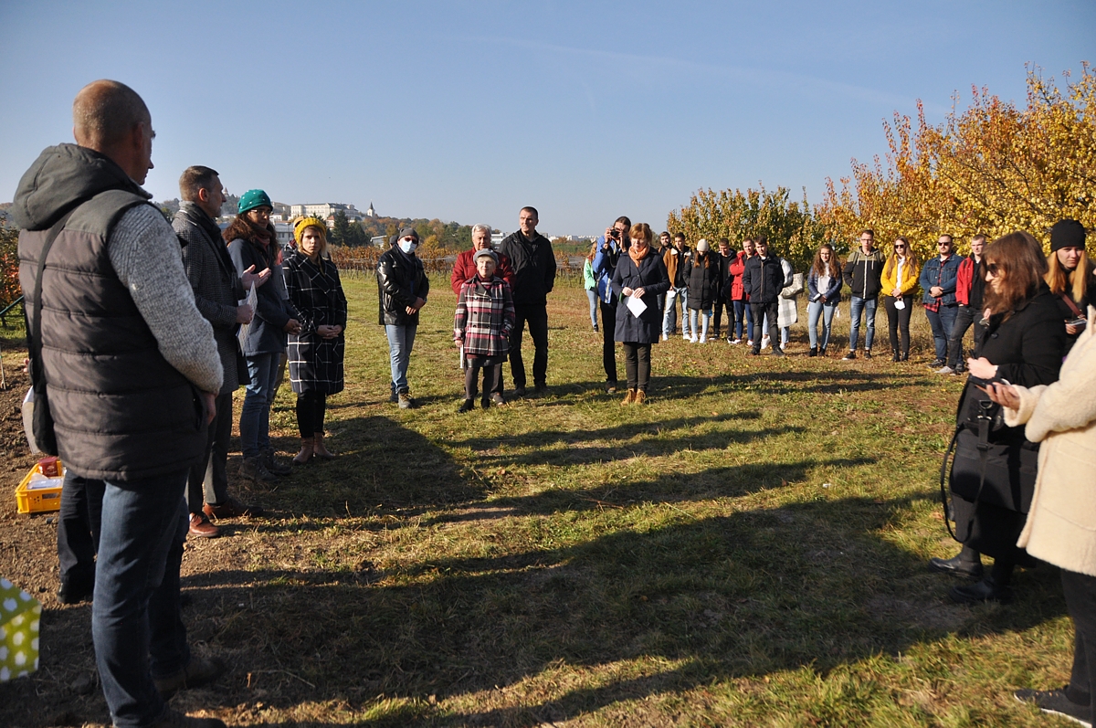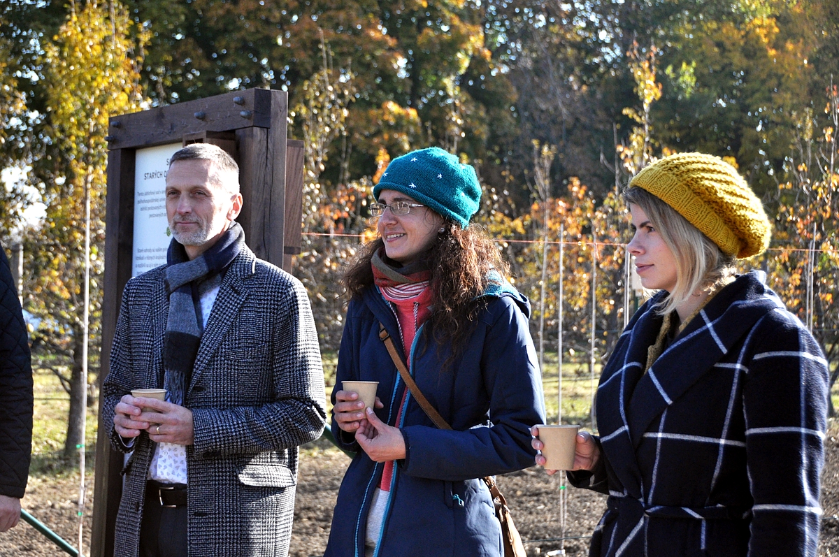 Na záver podujatia sa konal symbolický „krst“ sadu muštom a symbolické prihrnutie dvoch ovocných stromčekov.