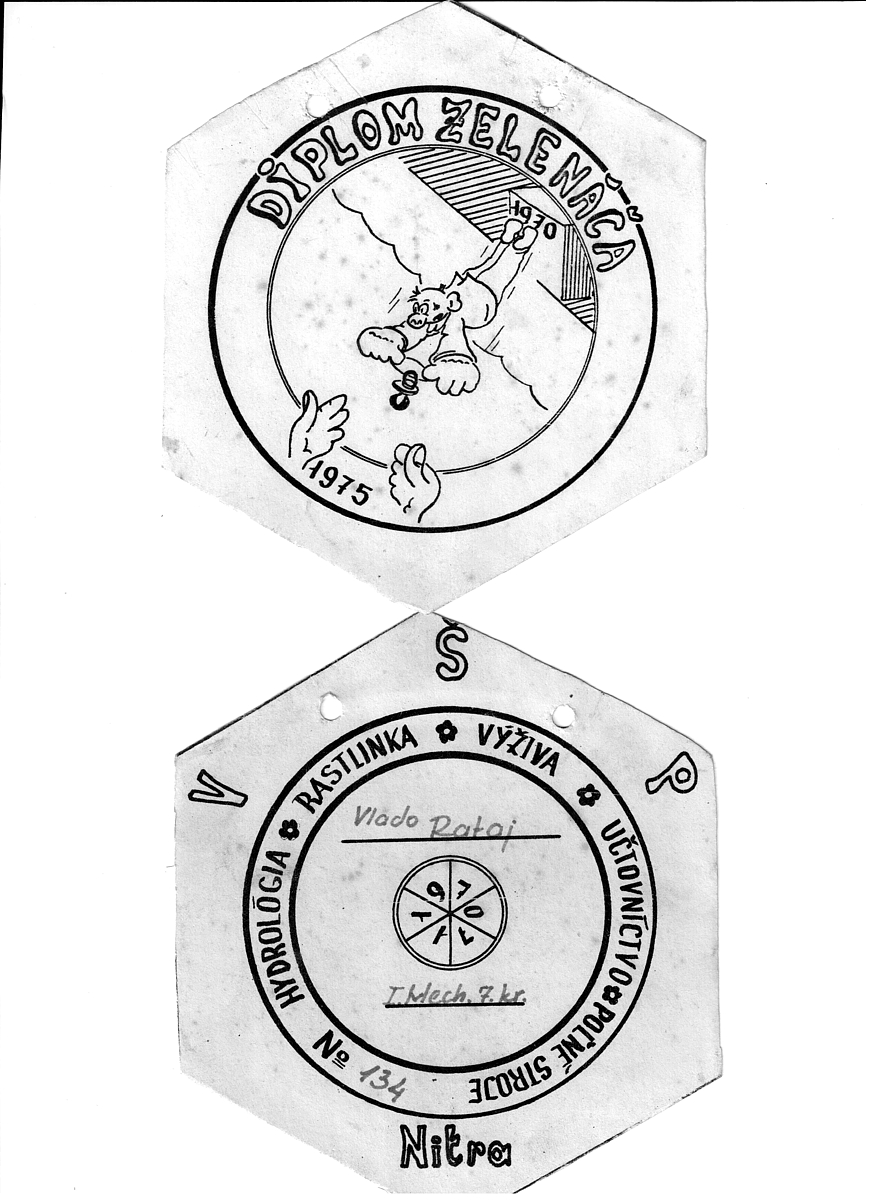 Diplom zelenáča z roku 1970, medaila primátora študentskej obce, pečať z centrálneho plagátu Foto: archív V. Rataja