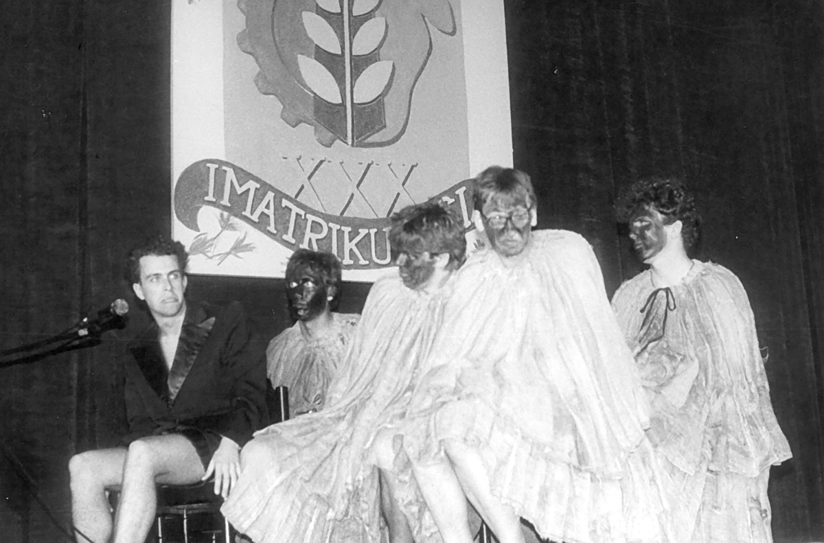 Ako som povedal, svet sa mení. Možno takto ladená recesia by dnes niektorej citlivej študentskej duši priniesla vrásky a vyvolávala argumenty na zásah do ľudských práv. Niektorých chlapcov drábi skutočne vo vedre s mliekom takmer vykúpali a dievčatám, pri sklonení sa do jarma, s radosťou šibali po nohách ... Zato na druhú časť programu sa tešili všetci. Išlo o parodické vystúpenia, v ktorých boli prezentované predmety, pedagógovia a iní pracovníci školy, s ktorými sa študenti denne stretávali. Keď som v roku 1970 zažil svoju prvú imatrikuláciu (bola to trinásta v histórii vysokej školy!), síce som sa dobre bavil, ale ako prvák, ktorý bol na škole asi dva mesiace, som mnohým narážkam a súvislostiam nerozumel. Ale podľa toho, ako sa ľudia okolo mňa zabávali, bolo jasné, že ide o konkrétnu a adresnú zábavu. Program pripravovali piataci a bola to jednoznačná vizitka ich tvorivej schopnosti. Mladších medzi seba púšťali len veľmi výnimočne. Ja som mal v treťom ročníku šťastie, že ma starší priatelia pozvali účinkovať do programu, a tak som bol po prvý raz spojený s jeho prípravou.