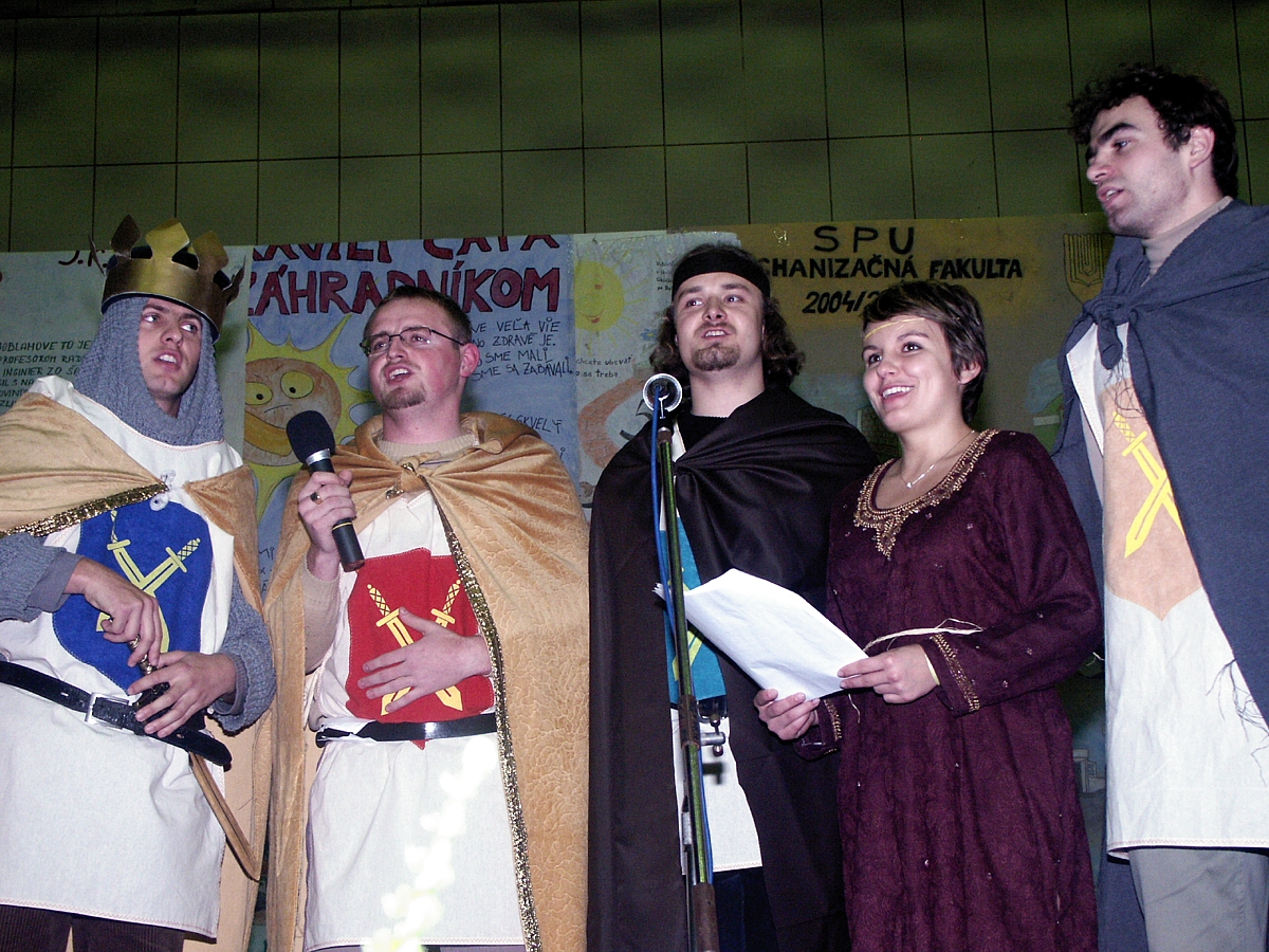 Konala sa v sále, kde prebiehal aj program, môžete si teda predstaviť, aký to bol nápor na organizátorov, aby v priebehu dvoch-troch hodín pripravili a vyzdobili sálu na večer. Nik sa nečudoval, keď večer organizátori už takmer nevládali – no bolo treba vydržať do rána a upratovať! V tejto chvíli troška odbočím – spomínam si, že v jednom roku bol vhodný termín na zapožičanie haly na Agrokomplexe len jeden týždeň po výstave drobného zvieratstva! Ak sme termín chceli, museli sme pavilón pomôcť vypratať, vyumývať, vydezinfikonať, navoziť stoličky a stoly, pomôcť postaviť javisko, vyrobiť a inštalovať výzdobu scény, naťahať káble a postaviť svetlá a ozvučenie – no a napokon po sebe poupratovať. Na dnes takmer nemožné – vtedy to študenti brigádnicky zvládli! Zábava pochopiteľne patrila ku každej imatrikulácii. Prváčky sa potrebovali predviesť v novej spoločnosti a „páni piataci“ zase dokazovali, že už majú štúdium takmer za sebou... Oboje malo vždy svoj význam a mnohé kontakty z imatrikulácie vydržali. V ostatných rokoch sa postupne, rovnako ako sprievod, začal vytrácať aj program a spoločenské stretnutie sa presunulo do Imatrikulačného plesu SPU. Je to pochopiteľné a s troškou nostalgie uznávam, že doba sa mení. Dnešný imatrikulačný ples je (dúfam) reprezentačným plesom univerzitných študentov a od bežného plesu sa líši tým, že aspoň v úvode sa improvizovane mihne niečo z bývalej tradície.