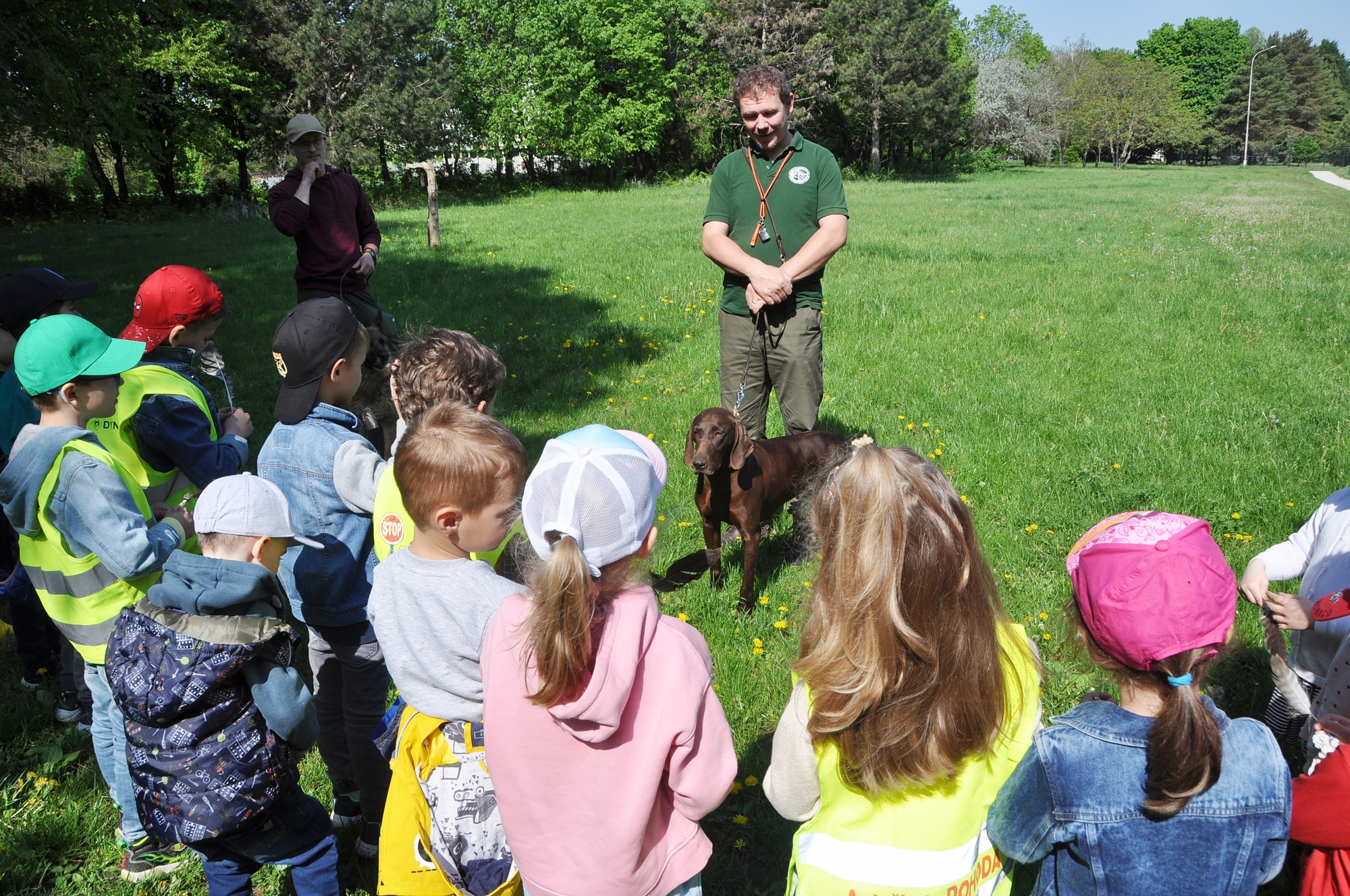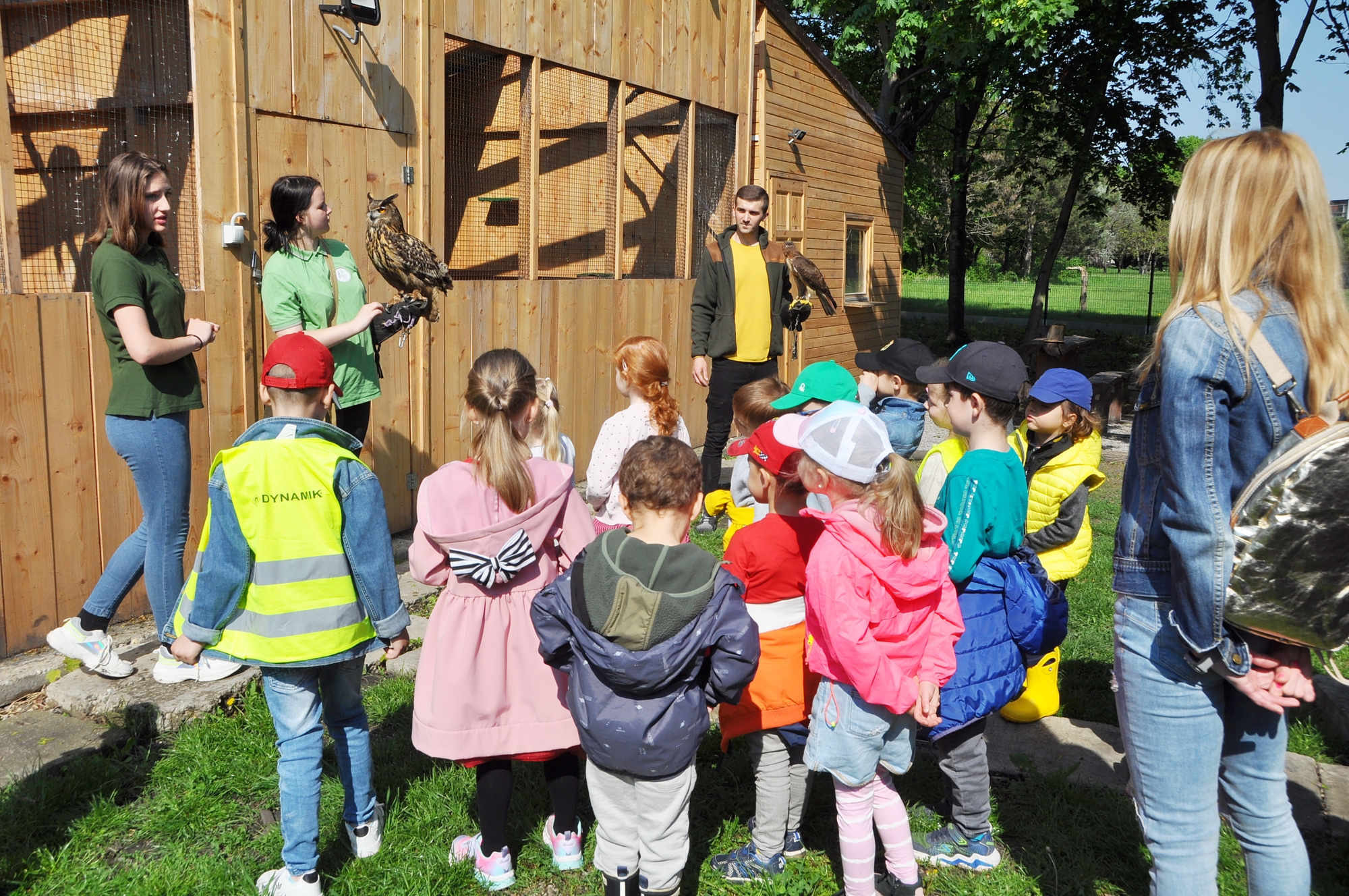Jarná BZ ponúka množstvo dojmov, ich pozornosti neušlo aké sú v nej krásne kvety, veľké stromy, ako pekne vtáčiky spievajú, žabky v jazierku kvákajú. Hoci okolo jazierka by strávili aj štvrť hodinku, ich zvedavosť napokon zvíťazila. S očakávaním, čo nové sa dozvedia, sa presunuli na stretnutie so sokoliarmi a kynológmi.