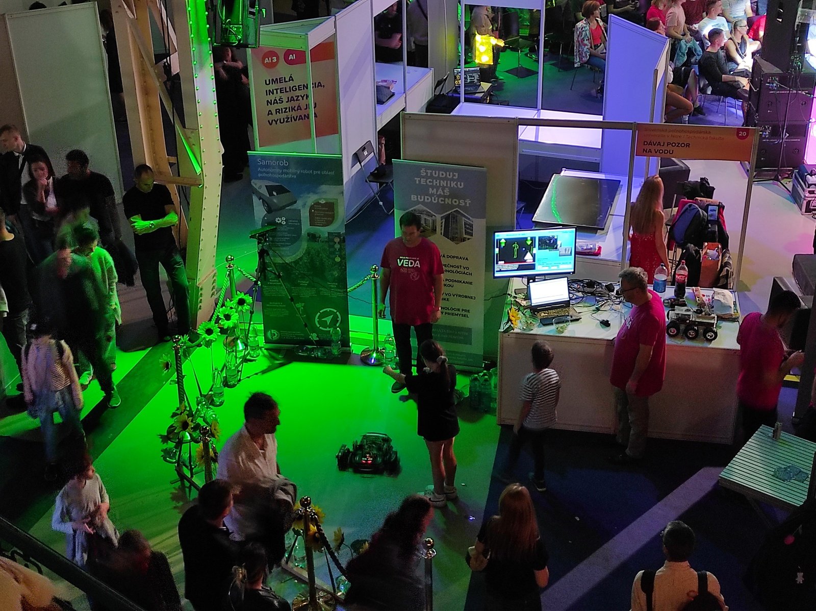 „Návštevníci všetkých vekových kategórií si mohli vyskúšať nasmerovať mobilného robota zo štartovacej pozície do vopred určeného cieľa a súčasne chrániť vodu umiestnenú na dráhe. Veľký záujem aktérov vzbudilo samotné riadenie robota, pri ktorom používali iba vlastné telo, ktoré bolo snímané kamerou, analyzované a detegované algoritmami umelej inteligencie,“ informoval L. Tóth. Dodal, že výskumníci počas celodenného podujatia, ktoré trvalo až do neskorých nočných hodín, zodpovedali množstvo otázok laickej i odbornej verejnosti ohľadom problematiky z oblasti mobilnej robotiky, algoritmov spracovania obrazu a umelej inteligencie využívanej v poľnohospodárstve.