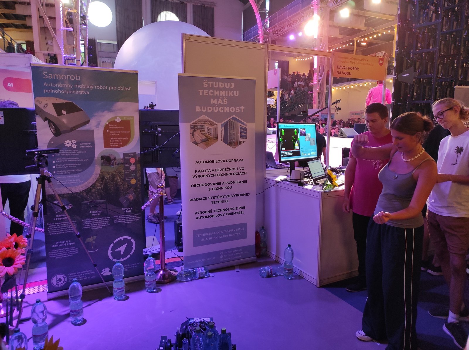 V reprezentačnom stánku TF s názvom Dávaj pozor na vodu skúsení výskumníci Ladislav Tóth, Lukáš Vacho, Stanislav Paulovič a Tomáš Giertl interaktívnym spôsobom priblížili záujemcom vedecké poznatky a objavy na fakulte.