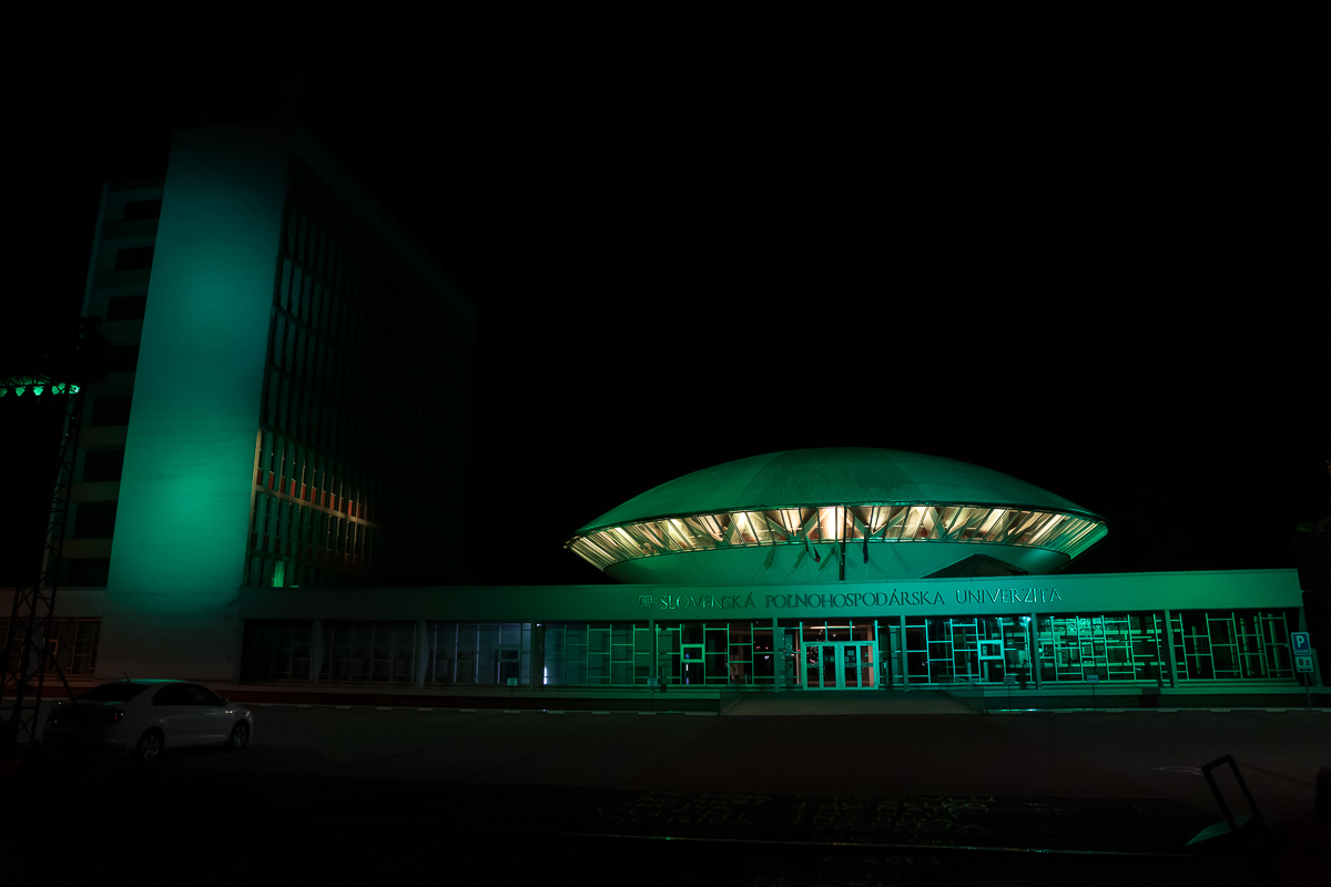 Prezývke nezostala nič dlžná. Aula v zelenom šate pripomínala ufo