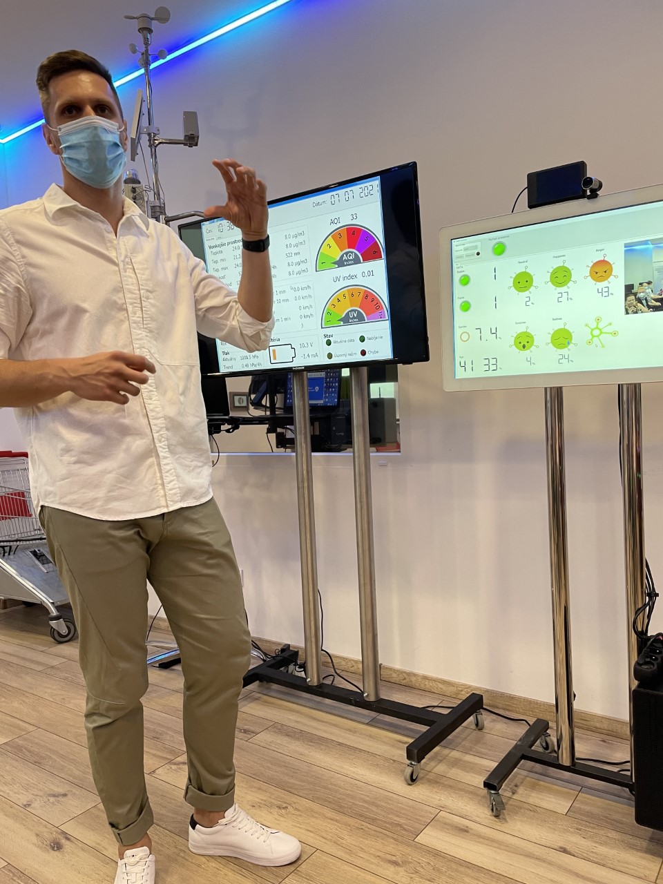Navyše monitorujeme veľmi dôležité faktory prostredia, ktoré na človeka pôsobia podvedome. Tie si nemusí uvedomiť, ale pre nás výskumníkov je dôležité ich monitorovať, aby sme vedeli odfiltrovať emócie skúmaného človeka.