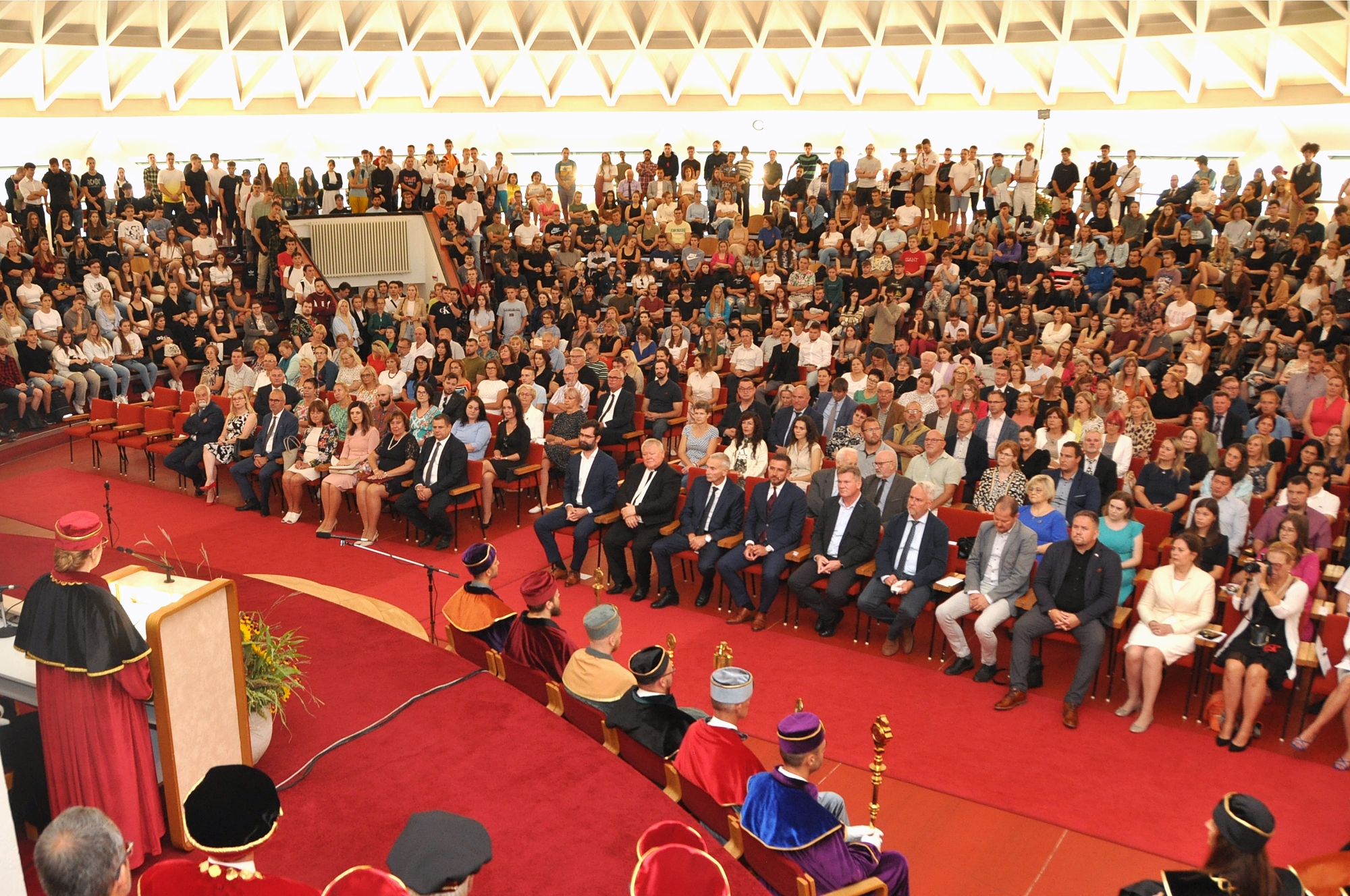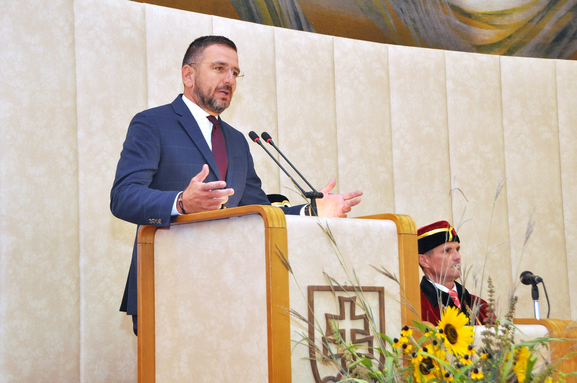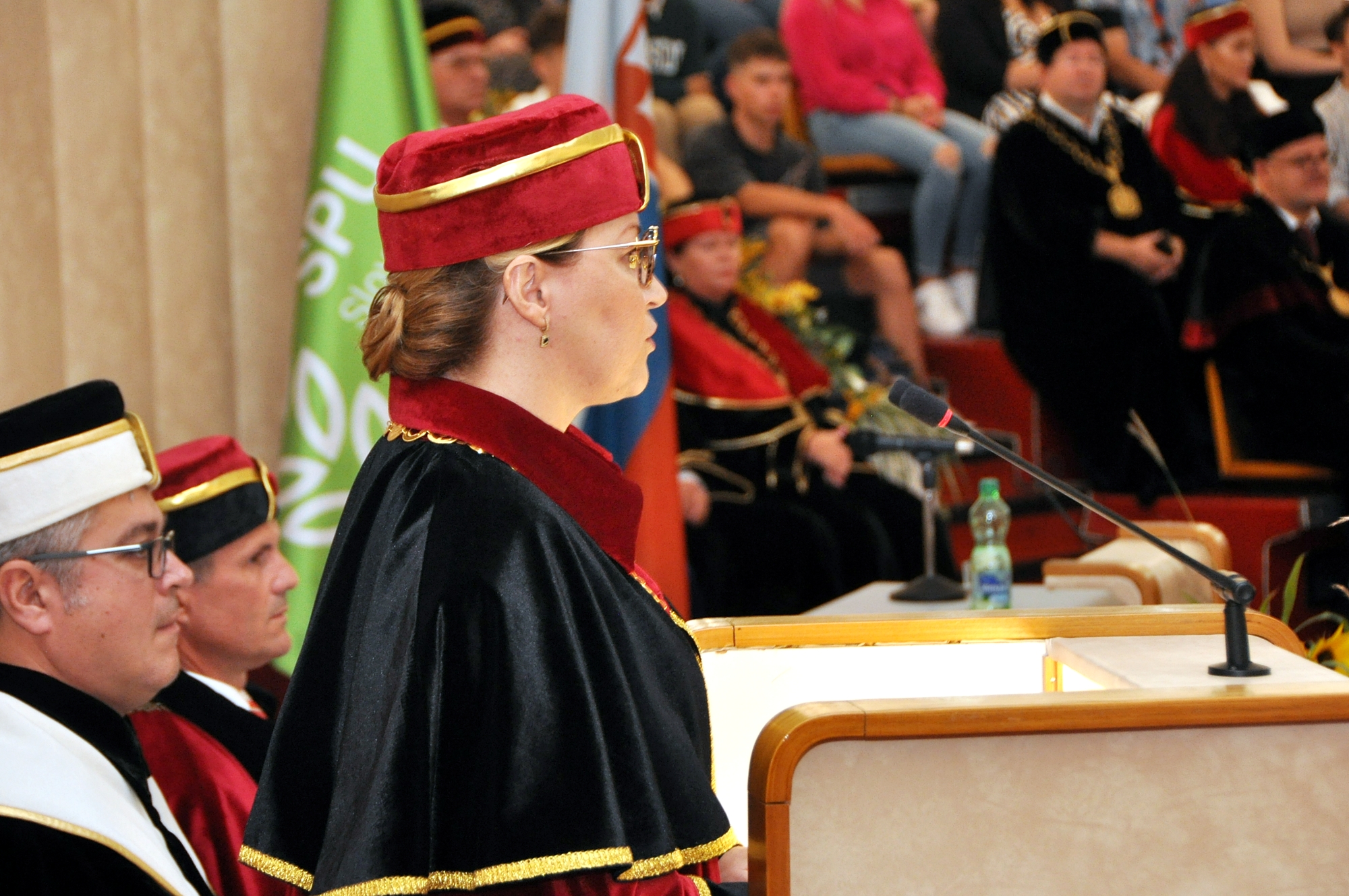 Vo svojom príhovore rektorka Klaudia Halászová priblížila vzdelávaciu, vedeckovýskumnú a projektovú činnosť SPU v uplynulom období a načrtla nové výzvy. V úvode pripomenula základné posolstvá SPU ako je akademická integrita, excelentnosť, inklúzia, zodpovednosť, úcta, spolupráca, inovácia, internacionalizácia a udržateľnosť.