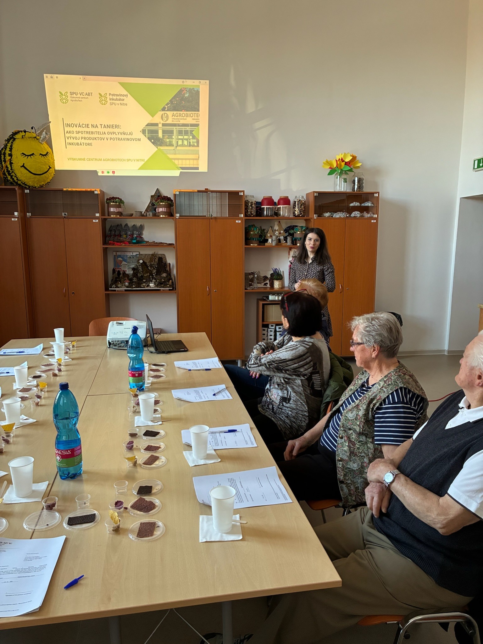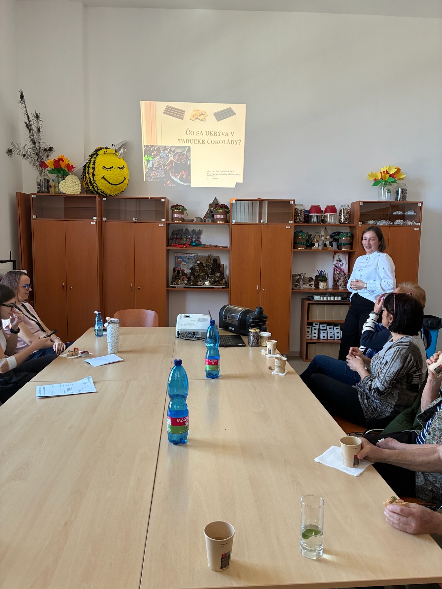 Docentka Eva Ivanišová pripravila pre zamestnancov workshop s názvom „Čo sa ukrýva v tabuľke čokolády?“ Program bol rozdelený na dve časti. V úvodnej prednáške sa účastníci oboznámili s kakaovými bôbmi, ich spracovaním, nutričnou hodnotou, ako aj s čokoládou a jej vplyvom na zdravie. Praktická časť bola zameraná na praženie kakaových bôbov. Účastníci mali zároveň možnosť zapojiť sa do vývoja nového produktu na báze vlašských orechov a vyskúšať si preferenčné hodnotenie senzorických vlastností pod vedením doktorky Kristíny Predanócyovej z Výskumného centra (VC) AgroBioTech. Atmosféru podujatia spestril vedomostný kvíz z oblasti potravín, ktorý pripravili a moderovali kvízmajstri doktor Michal Mihaľ a doktor Denis Bažány z VC AgroBioTech.
