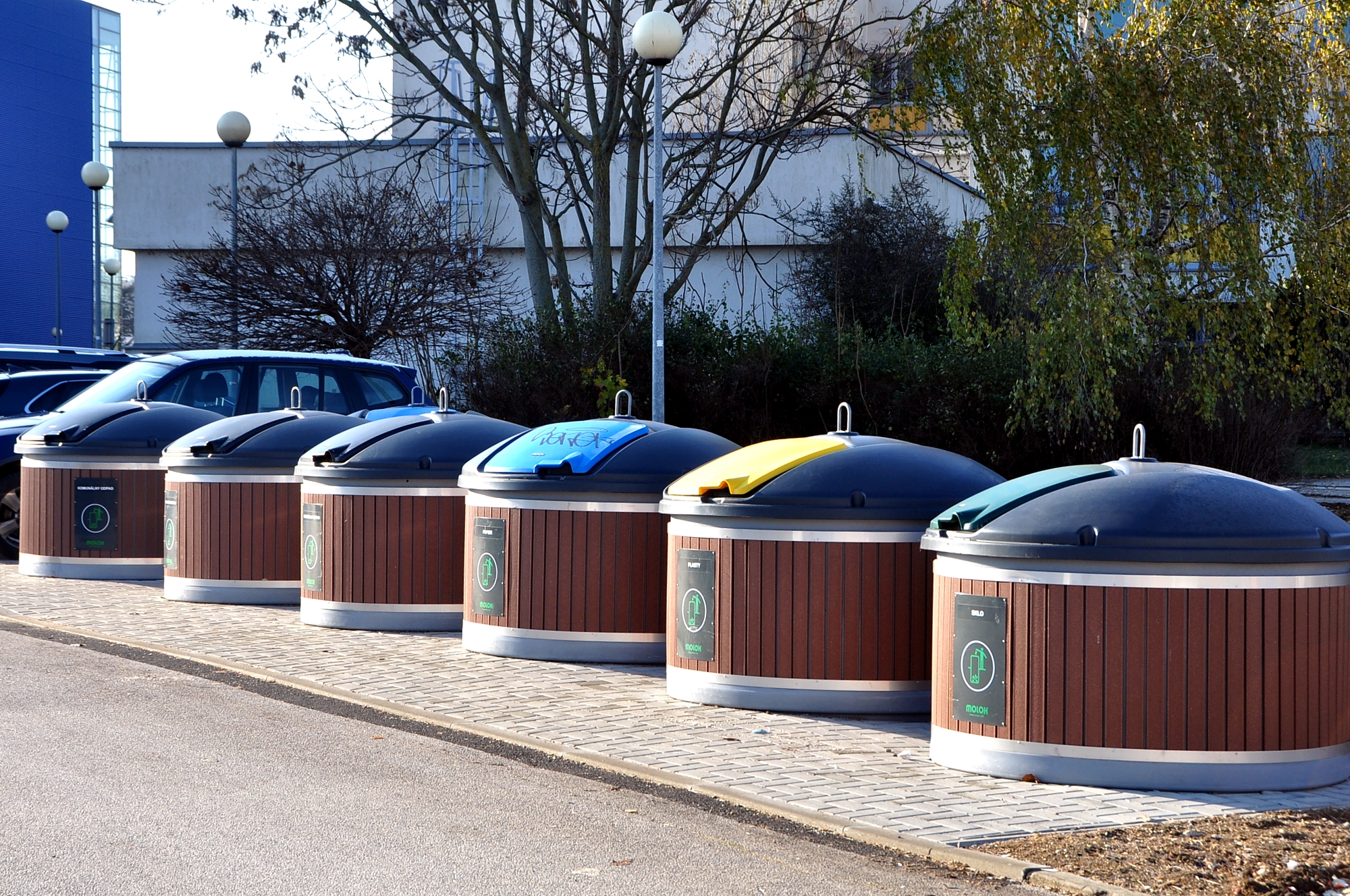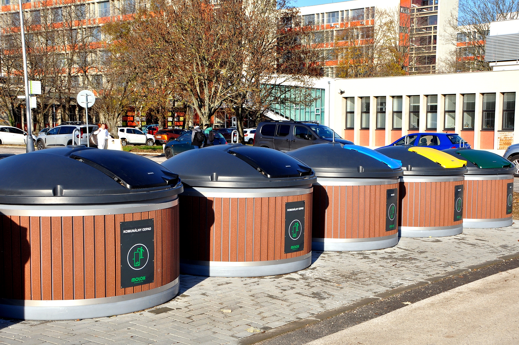 V súčasnosti má univerzita vybudované dve stojiská s dvanástimi kontajnermi MOLOK od trenčianskej spoločnosti REDOX-ENEX. Päť polopodzemných kontajnerov je umiestnených v okolí Študentského domova Antona Bernoláka a sedem je v centrálnom kampuse SPU. Významnou mierou uľahčujú triedenie odpadov a ich vývoz.