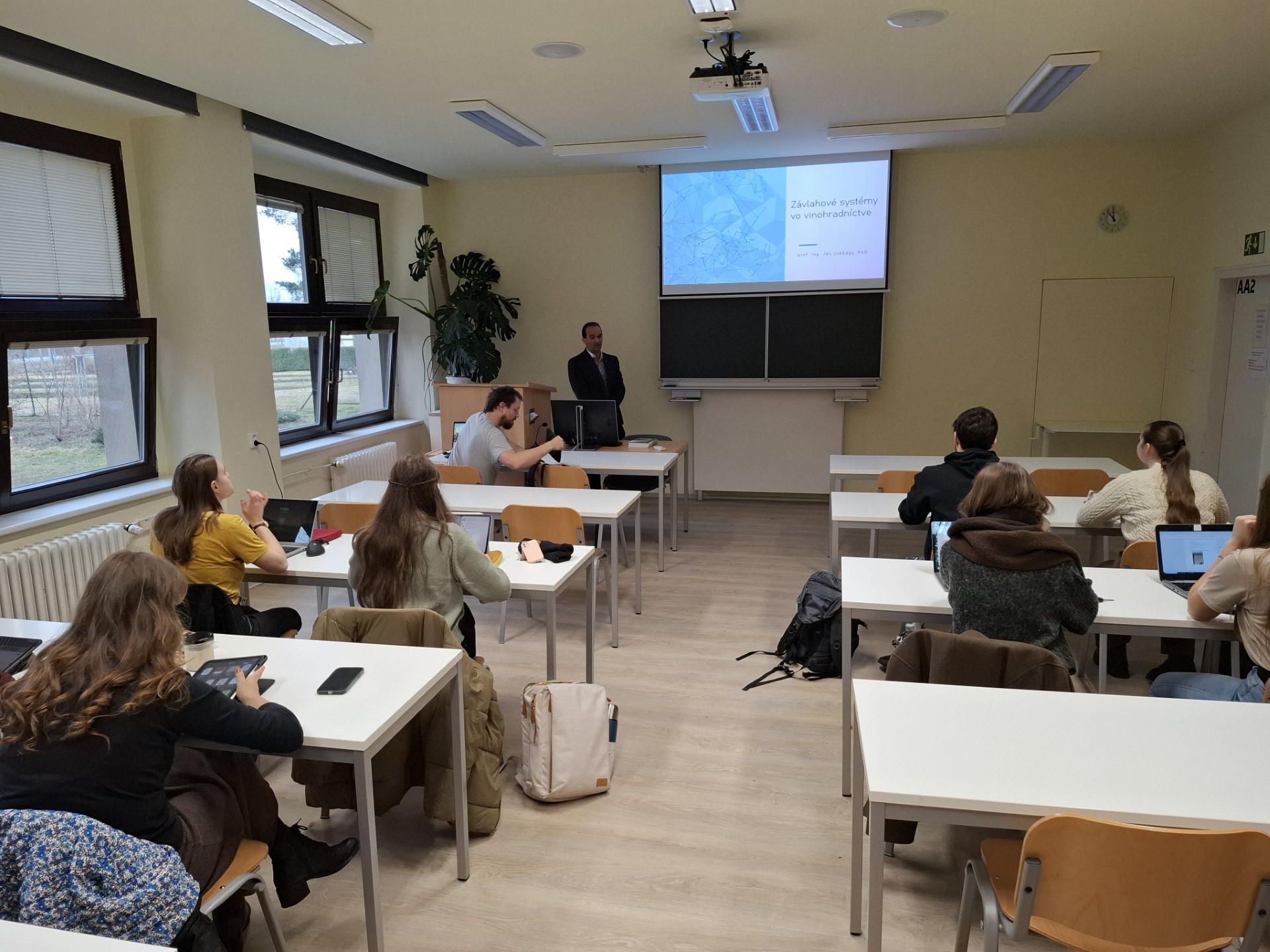 Odborník Ústavu poľnohospodárskej techniky, dopravy a bioenergetiky Technickej fakulty SPU v Nitre počas pobytu prezentoval študentom najnovšie trendy v oblasti závlahy a vlahovej potreby vinohradov. „Prvá prednáška a cvičenie bola súčasťou predmetu špeciálna mechanizácia. Cieľom predmetu je poskytnúť študentom teoretické a praktické znalosti z oblasti špeciálnej mechanizácie využívanej pre inštaláciu a prevádzku závlahových systémov, kompostovania záhradníckych odpadov, ako aj v oblasti škôlkarskej produkcie,“ uviedol profesor Jobbágy. Dodal, že študenti získavajú základné informácie zamerané na znalosti využívaných technológií a systémov z oblasti záhradníckej a škôlkarskej produkcie s presahom do komunálnej oblasti.