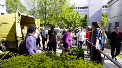 Pred budovou centrály SPP v Bratislave to dnes chvíľami vyzeralo ako pred aulou niektorej z vysokých škôl. Zavítalo k nám totiž 43 študentov druhého a tretieho ročníka Fakulty záhradníctva krajinného inžinierstva Slovenskej poľnohospodárskej univerzity v Nitre pod vedením doc. Ing. Dagmar Hillovej, PhD.