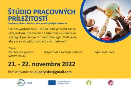 EIT Food Hub-u na SPU v Nitre organizuje rôzne semináre, tréningové školy a workshopy pre rôzne cieľové skupiny. V novembri bude pod záštitou Fakulty biotechnológie a potravinárstva a EIT Food Hub-u realizované aktivita Job Skills Studio, ktorej cieľom je podporiť umiestnenie mladých ľudí z Ukrajiny na trhu práce v Európe, napomôcť získať prvé pracovné skúsenosti a rozvíjať kompetencie a zručnosti v agropotravinárskom sektore prispôsobené požiadavkám európskych firiem. Aktivita zahŕňa sériu prednášok, ktoré majú napomôcť zvýšiť šance Ukrajincov uplatniť sa na trhu práce v oblasti agropotravinárskeho sektora v súlade so strategickým cieľom EIT Food: „Vzdelávať k zapojeniu, inovovaniu a napredovaniu.“ Navyše je toto podujatie zamerané na osvojenie si osvedčených postupov v rámci celého hodnotového reťazca, ktoré by účastníci mohli realizovať v budúcnosti po návrate na Ukrajinu.