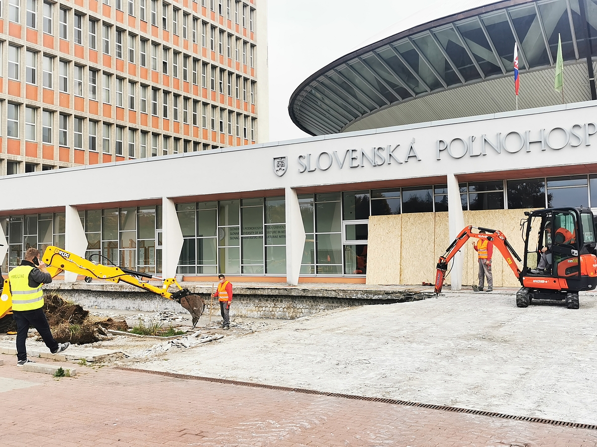 V areáli univerzity sa 26. októbra začali stavebné práce. Nový šat dostane bazén pred Aulou SPU a modernizácia čaká aj vnútorné priestory všetkých troch blokov študentského domova Nová doba.