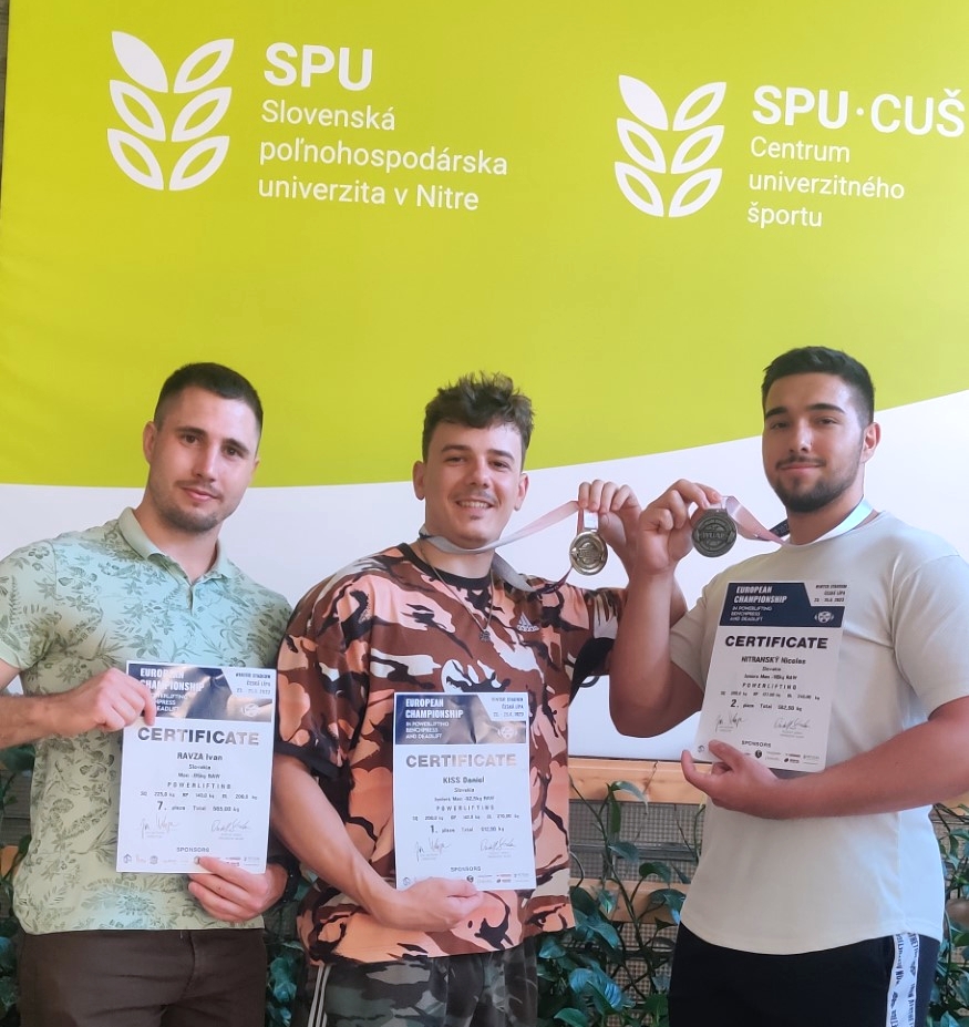 Čerstvý absolvent bakalárskeho štúdia na FAPZ Nicolas Nitranský získal striebornú medailu a titul vicemajstra Európy v kategórii Junior Men - 110 kg RAW a tohtoročný absolvent inžinierskeho štúdia na FAPZ Ivan Ravza obsadil v kategórii mužov 5. miesto.