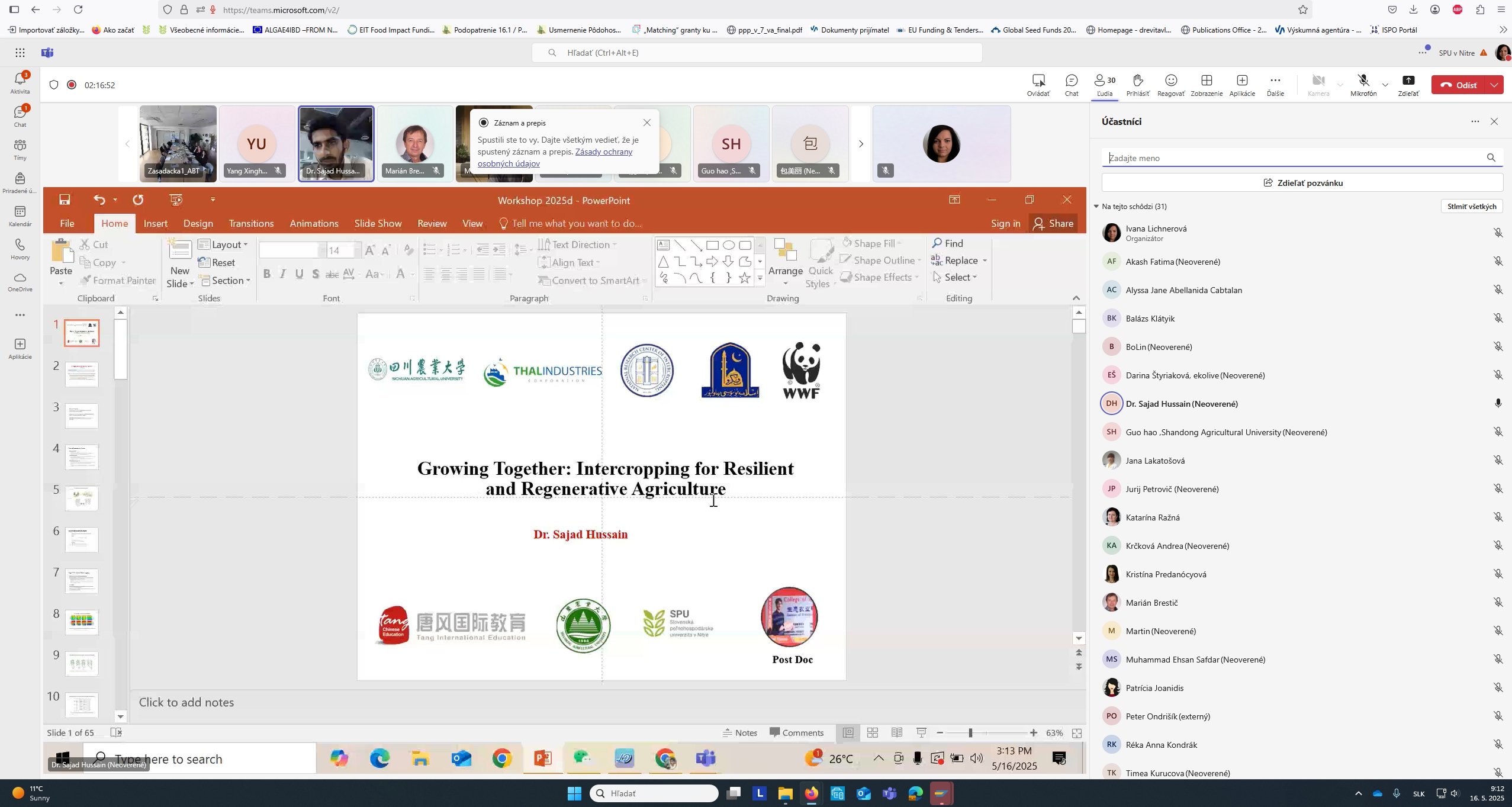 Podujatie organizované pod záštitou projektu EIT Food otvorila riaditeľka VC AgroBioTech Adriana Kolesárová. Prvá časť diskusie prebiehala v anglickom jazyku. Aktívne sa do nej zapojili výskumníci z partnerskej čínskej Poľnohospodarkej univerzity v Shandongu a z pakistanskej Univerzity v Sargodhe. Diskutovalo sa na štyri témy – Medziplodiny pre regeneratívne poľnohospodárstvo, Regeneratívne poľnohospodárstvo, systém medziplodín bavlny a sóje, Zelená sanácia normálnej a soľou postihnutej pôdy kontaminovanej olovom, Regeneratívne poľnohospodárstvo v Pakistane.