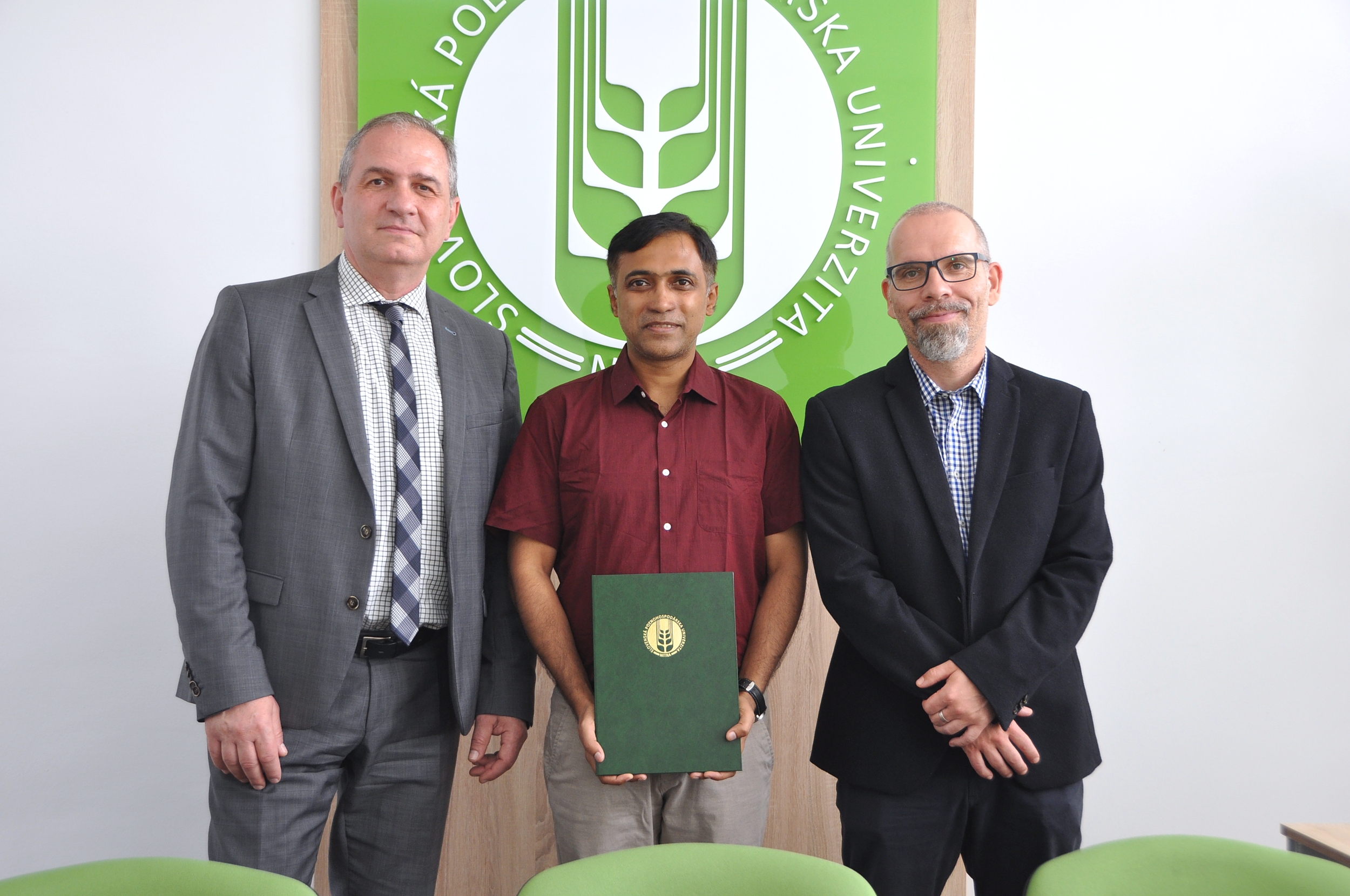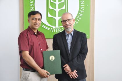 Vymenovací dekrét o udelení vedecko-pedagogického titulu docent si dnes z rúk prorektora SPU v Nitre pre vedu a výskum docenta Drahoslava Lančariča prevzal Ing. Shubhadeep Roychoudhury z Assam University v Silchare v Indii.